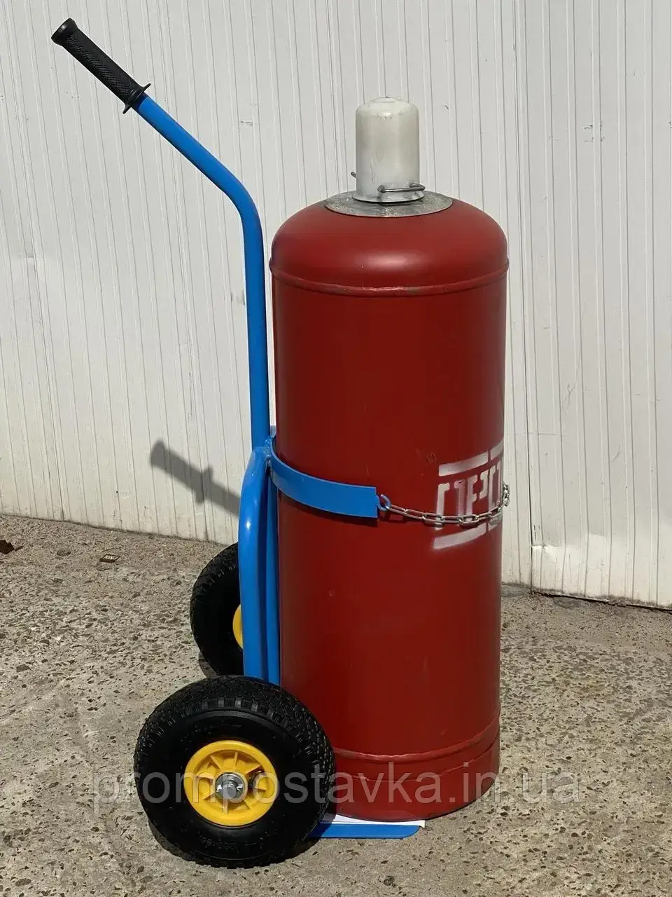 Візок двоколісний під пропановий балон ТБП 2080 Навантаження 200 кг. Платформа 480х370мм. Висота візка 1350мм. Пневматичні колеса під 204 підшипник. Порошкове фарбування RAL 5015.